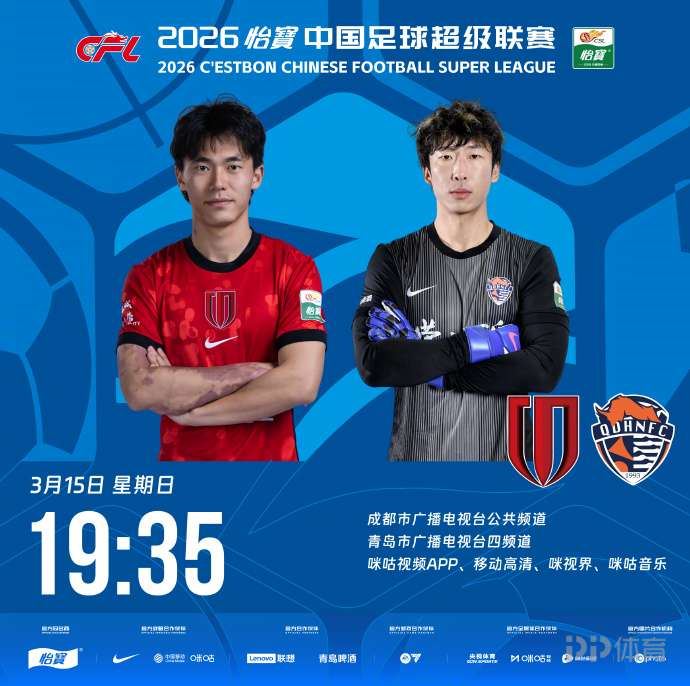 今晚19点35分,中超第2轮,成都蓉城主场迎战青岛海牛,赛前两队公布首发。