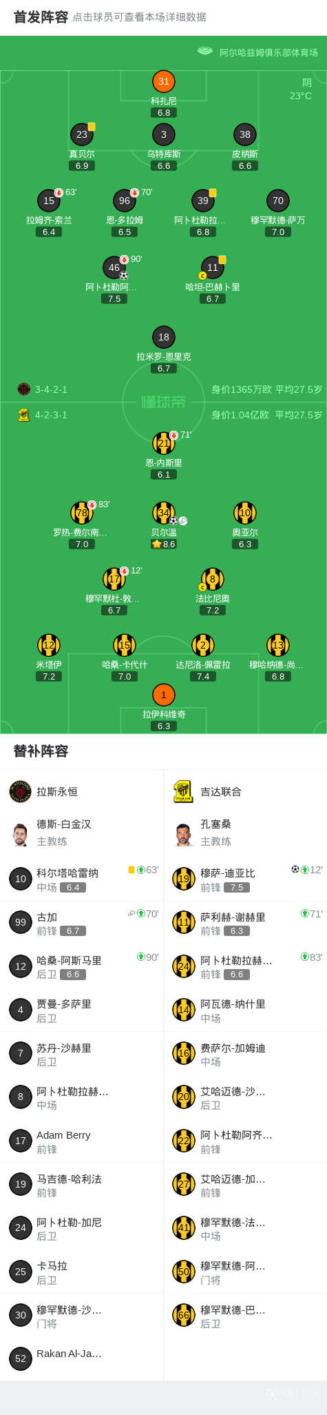 第40分钟,联合任意球机会,迪亚比爆射破门,吉达联合1-0